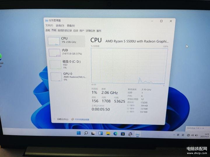 4、把这个窗口拖到右下角,直接不用管,等简单看完各个硬件参数没问题之后,再把小窗口拉出来,点击“确定”,就回到启动Windows 11的初始界面啦。
